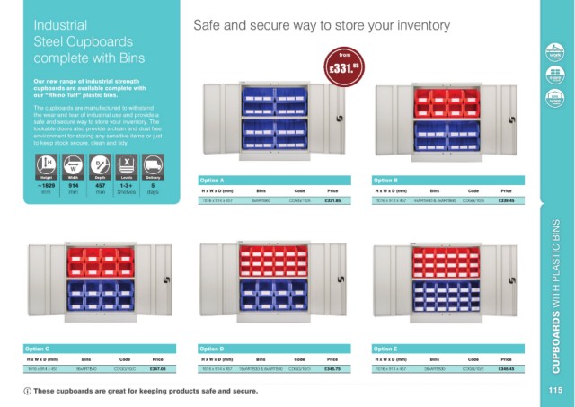 mm mm mm Shelves days H x W x D (mm) Bins Code Price H x W x D (mm) Bins Code Price